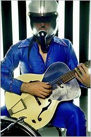 Découvert grâce à France Inter, voici Bob log III, un “one man band”, qui se produit casqué, et chante dans un combiné…
