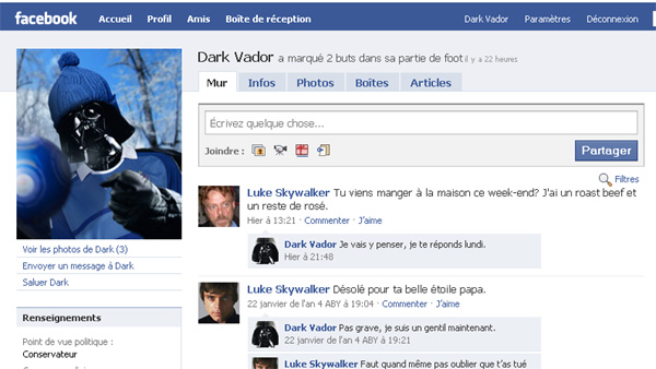 Et si le vrai Dark vador… 16 février 2010C'est bon ça ! 1était sur facebook... était sur facebook… La suite ici : http://www.mauvaisoeil.com/extras/darth/france/index.html (Merci D-Rek) Article précédent Taxi Driver – You Talkin’ to me ? Article suivant Loom Dawn – Escape