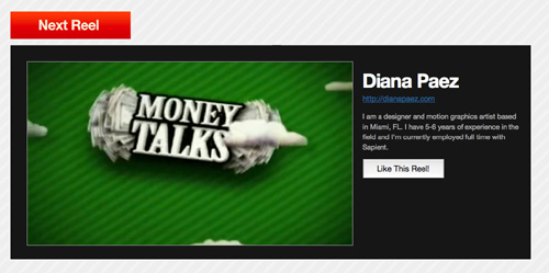 Comme sur chatroulette, vous tombez ici aléatoirement sur le travail de “motion designers” et puis vous faites next pour passer à la vidéo suivante.