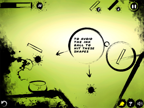 Le principe est simple : dévier des gouttes d’encre vers un encrier… Le nombre de gouttes est limité, et le nombre d’accessoires à votre disposition aussi… D’ailleurs, à gérer, ces accessoires, c’est simple, il n’y en a que deux, que vous pouvez orienter à loisir : une latte toute simple, déviant les gouttes, et une autre, élastique, faisant rebondir, vous l’aurez deviné, les gougouttes…
