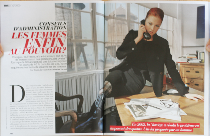Cette photo illustre le sujet sur les femmes au boulot et plus précisément sur les femmes dans les conseils d’administration : elles ne représenteraient que 16% des effectifs. C’est clair, il y a encore du chemin à parcourir pour atteindre une égalité homme/femme dans les entreprises.