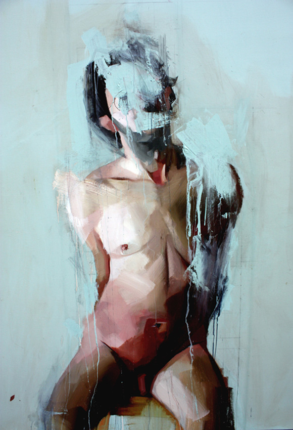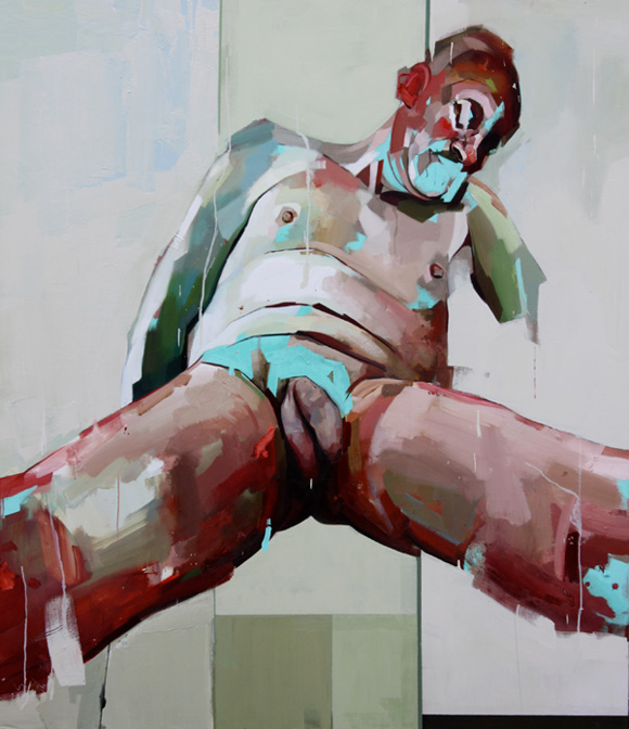 De grands formats, des portraits ou des corps, surtout des hommes. Une chair offerte, en partie dissoute, entre figuration et abstraction. Des couleurs froides comme de la viande. C’est ça Benjamin Cohen.