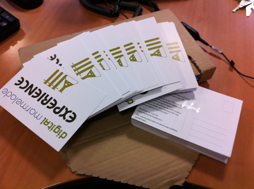 Voilà l’idée : digital marmelade a fait imprimer 100 cartes postales que vous pouvez découvrir ci-dessous :