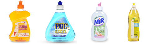 Allez, hop, on commence par ce qui se fait en matière de produit vaisselle. Notez que j’ai choppé quasiment tout ce qui se fait en la matière :