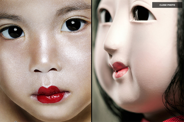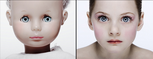Son dernier projet, “The flesh and blood toy store” (le magasin de jouets en chair et en os), sous forme de diptyques présente d’un coté la poupée et de l’autre son modèle humain. Il s’agit ici de la question du rapport que l’on peut entretenir au modèle. D’ailleurs, lequel des deux est le modèle ? « Est-ce l’enfant qui imite la poupée, ou imite-t-on l’enfant pour faire la poupée ? »