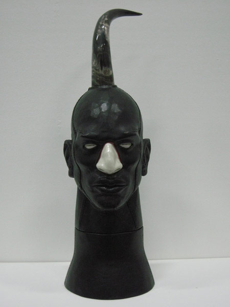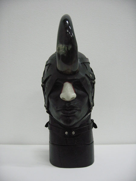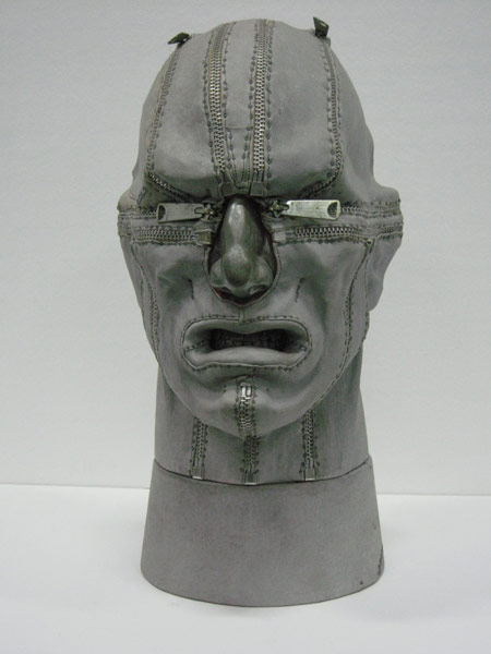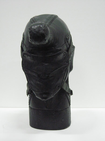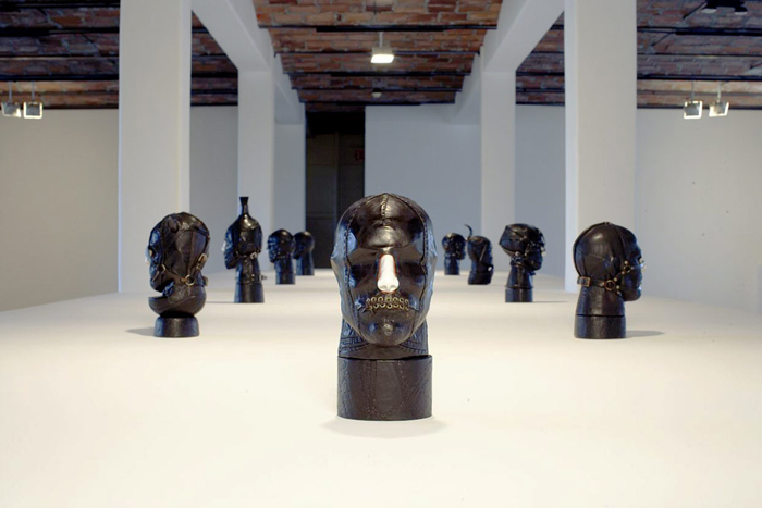 Nancy Grossman est une artiste américaine qui s’est fait connaître dans les années 60-70 avec des têtes sculptées dans du bois, recouvertes de cuir et accessoirisées. Ces visages sont la plupart du temps rendus aveugles et muets. Ce sont alors la guerre du Vietnam et les mouvements sociaux des années 60 qui l’ont inspirée. Ces têtes évoquent l’anxiété des individus face à la violence de nos sociétés.