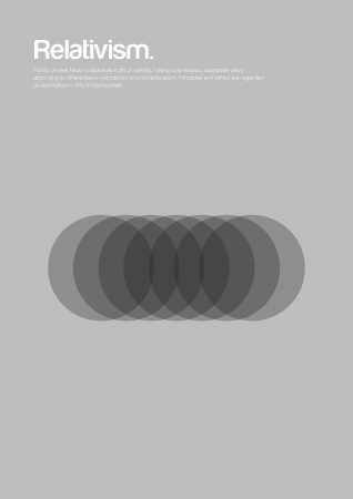 Je ne sais pas si ça rend le concept plus compréhensible mais la simplification est radicale : quand il faut 28 250 mots à l’Encyclopédie de Philosophie de Standford pour décrire le Relativisme, il faut 3 lignes et 1 image à Genis Carreras.